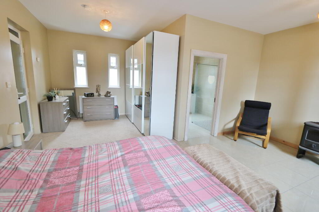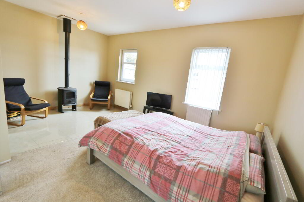 Spacious bedroom Living Area with tiled floor and Multi fuel stove