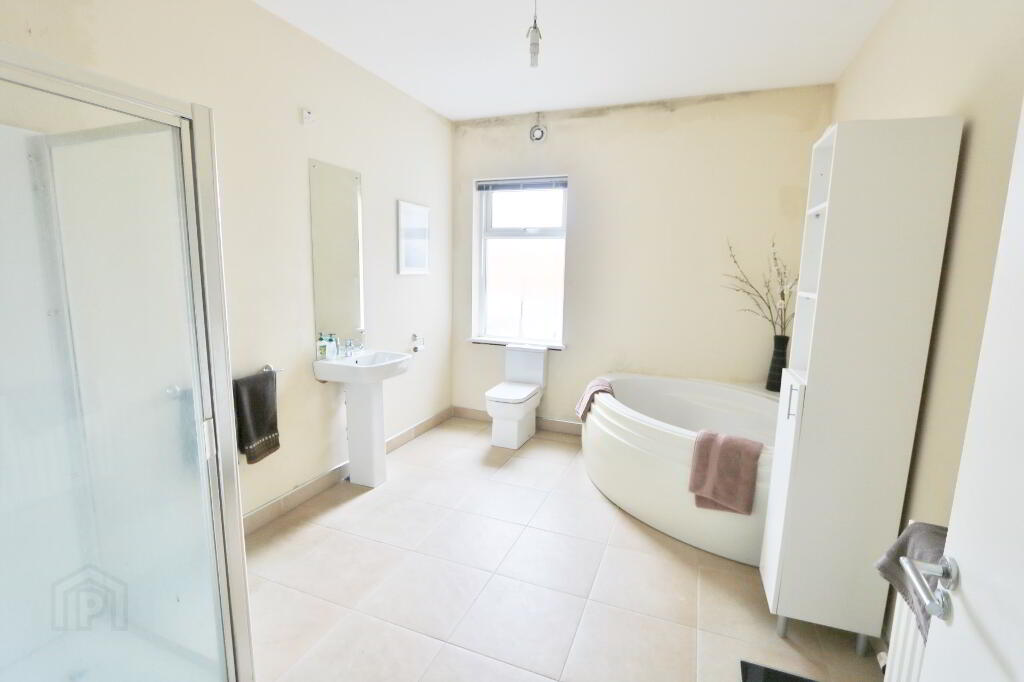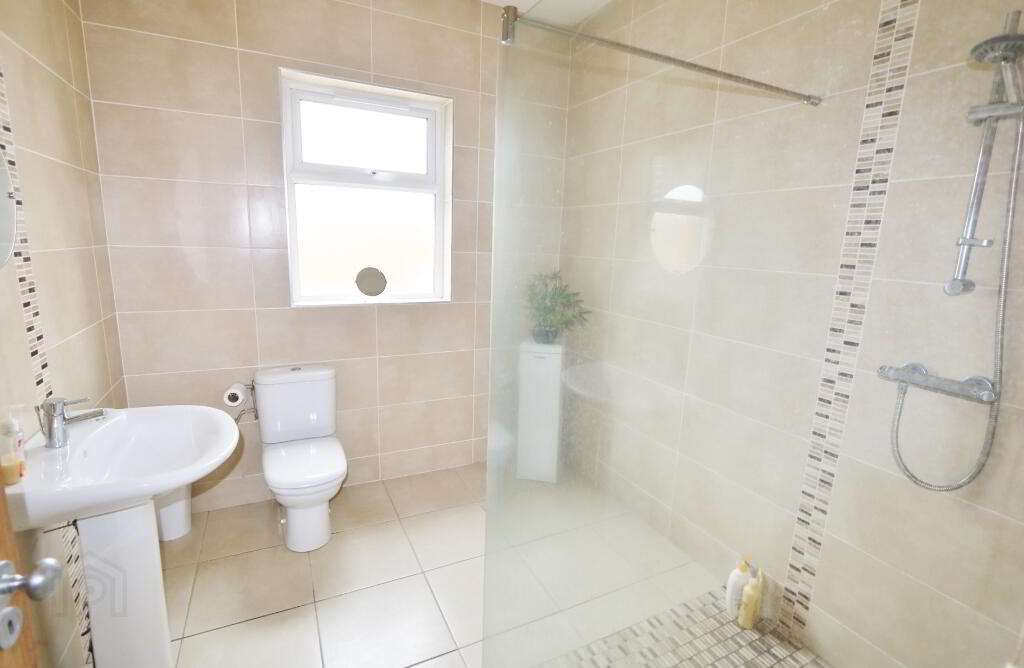Close coupled WC. Pedestal Wash Basin. Fully tiled shower cubicle with thermostatic shower. Shower Screen. Fully tiled walls. Tiled floor.